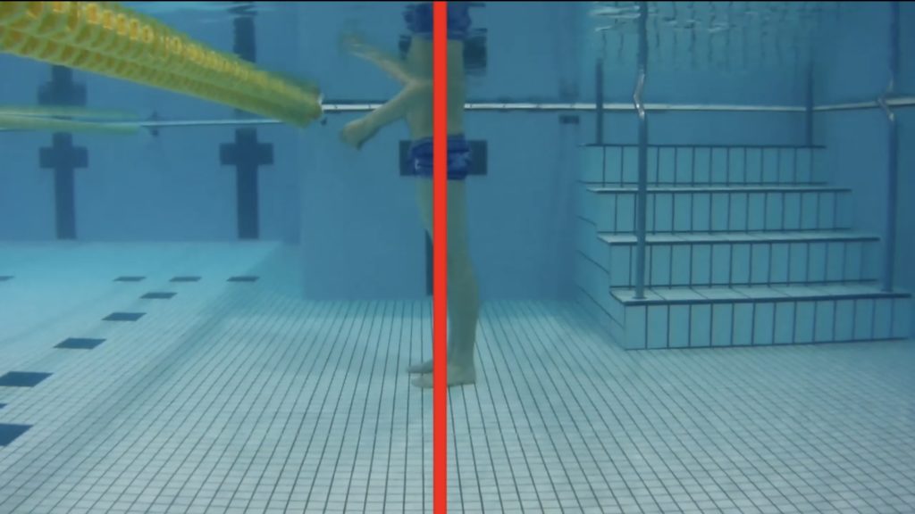 もっと言うと、泳いでいるときに下半身が沈んできてしまうのは、頭が上がってしまったりして、体のラインが水平を保てず、斜めになってきてしまうから。ということがいえます。