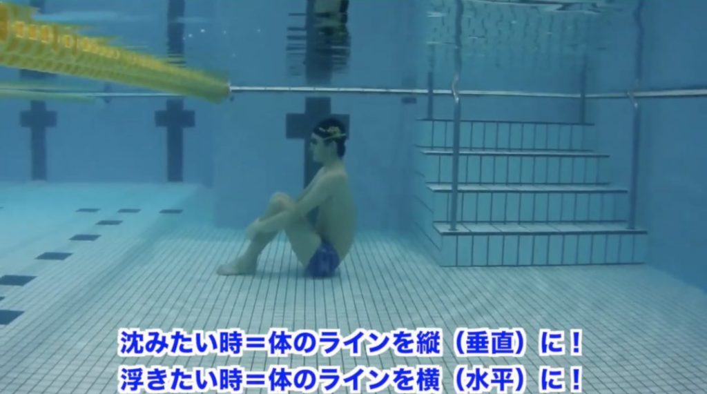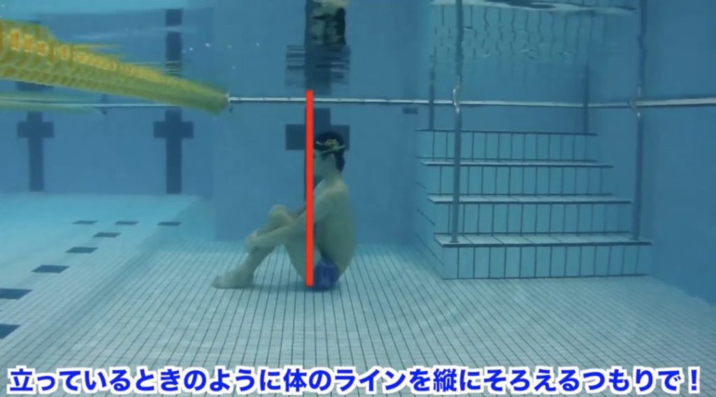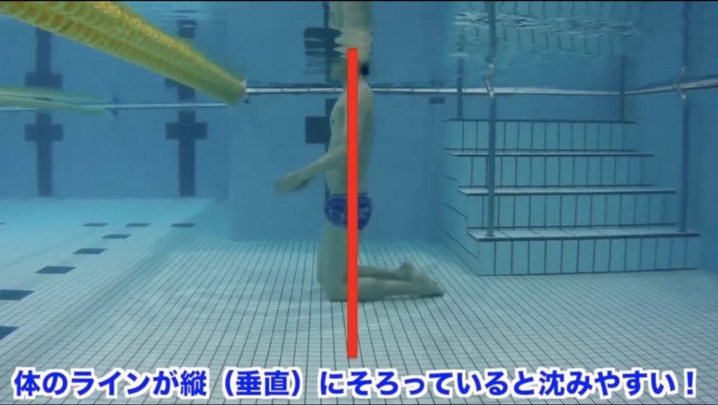 つまり「沈もう!」と思った時には立っている時のように、自分の体の縦のラインをにそろえれば、沈みやすい!ということです!